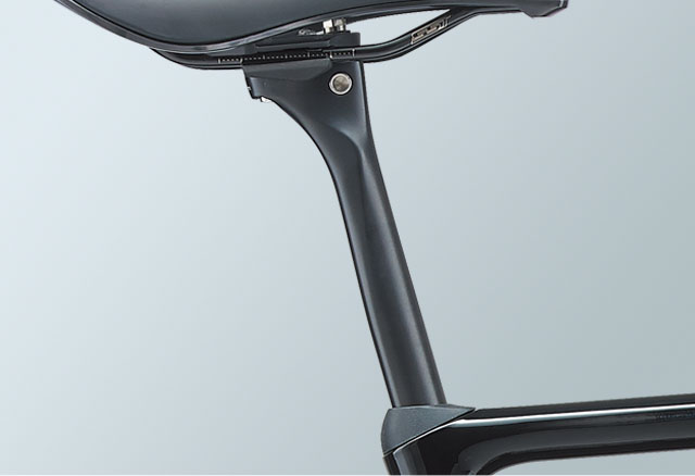 D型断面のカーボンシートポストがより進化。上部に採用したくびれ形状が快適性を向上。