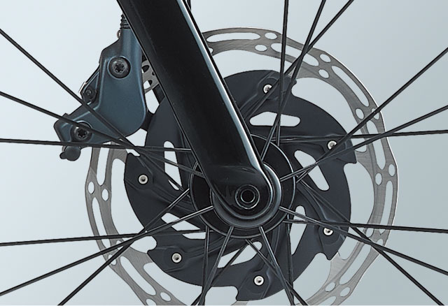 高剛性の12mmスルーアクスルとフラットマウントのディスクブレーキを前後とも採用。