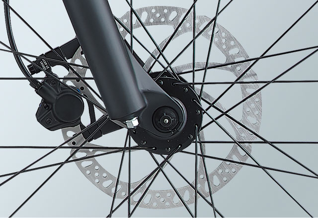 強力な制動力とコントロール性に優れ、雨天時でも安定性が高い油圧式ディスクブレーキを標準装備。