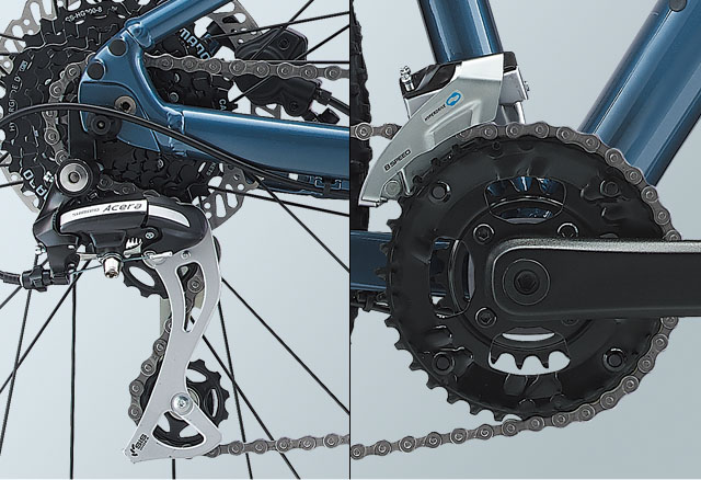 シンプルな操作性とワイドなギアレンジを可能にする、安心のシマノ製ドライブトレインを採用。