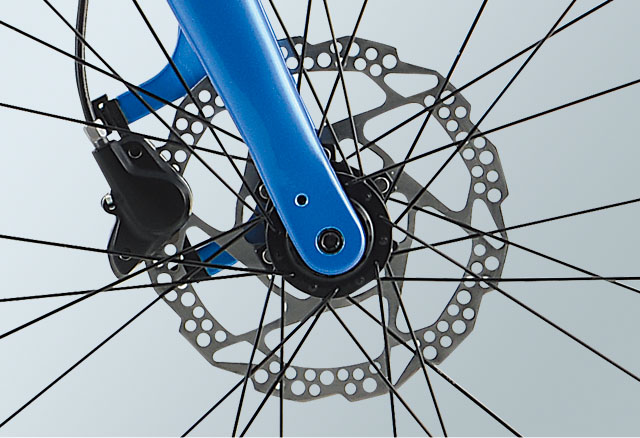 レバーの引きが軽くコントロール性の高い油圧ディスクブレーキは、急な雨でも確実に制動。また、頻繁なブレーキ操作でも疲れを軽減するため長距離走行に最適。