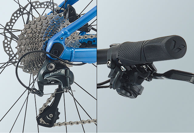軽量でスムーズな操作性のSHIMANO TIAGRAシフター&リアディレイラーを採用。11~34Tの10段ギアとパワフルなモーターサポートの組み合わせでスポーティな走りを実現。