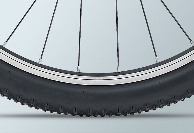軽い走りとグリップを両立するセミブロックタイヤをワイド化させ、安定性を向上。