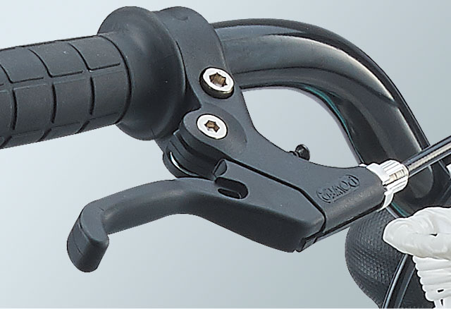 小さな手でもしっかりブレーキできるジュニア用のスポーツブレーキレバーを採用。