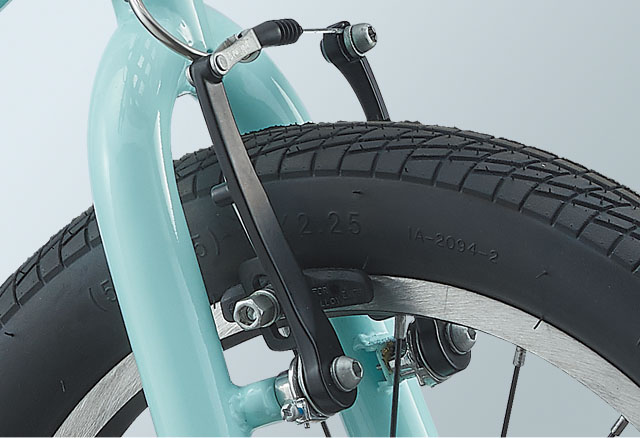 キッズの小さな手指と握力でも確実にブレーキングできる「Vブレーキ」を採用。安心感で成長をサポート。