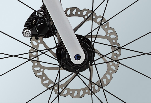レバーの引きが軽く安定性に優れるシマノ製油圧ディスクブレーキを標準採用。
