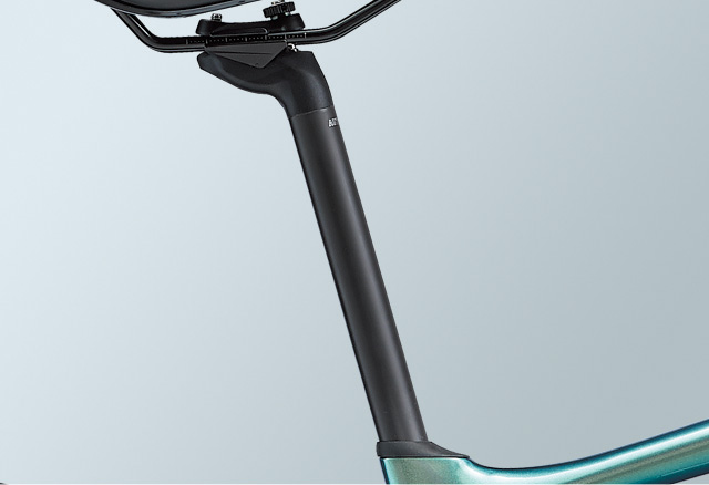 路面からの衝撃を逃がし快適なペダリングをサポートするD型断面形状カーボンシートポスト。