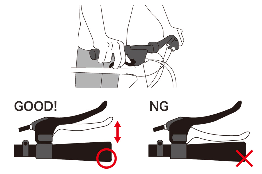 ブレーキをかけた状態でバイクを前後に動かし、車輪がしっかり止まっているか、ブレーキの効きを確認します。バイクが動いたり、ブレーキレバーがグリップに当たる時は、調整や部品の交換が必要です。