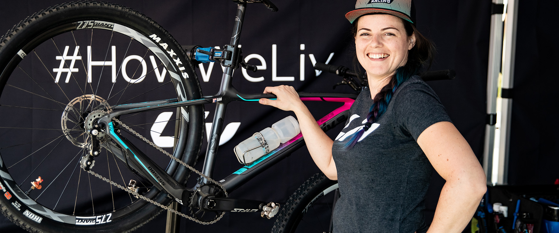 クイックレリーズレバーが正しい方向に適切な強さで閉じられているか、車軸がズレなくしっかり固定出来ているかも、確認します。