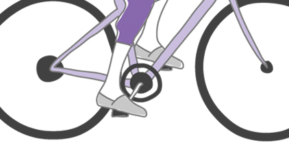 足の親指の付け根(母指球)をペダルの軸に置きます。つま先は、まっすぐ前へ向けましょう。