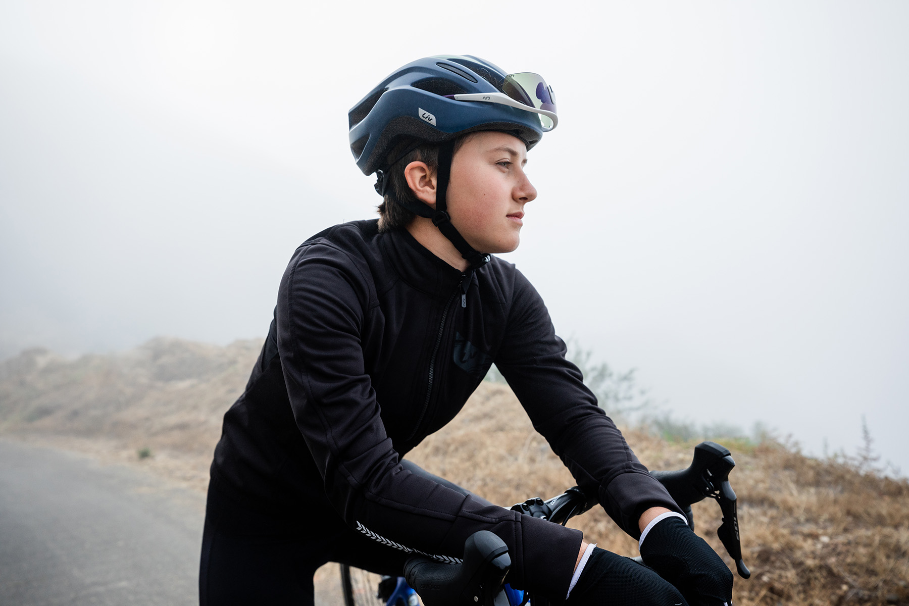 凍り付くような寒さでも、外気をシャットアウトする高機能なウエアと小物を準備すれば、快適にサイクリングを楽しむことができます。冬用のベースレイヤーに、中間着として長袖ジャージを合わせ、防風・防水素材のサーマルジャケットをアウターとして着用しましょう。