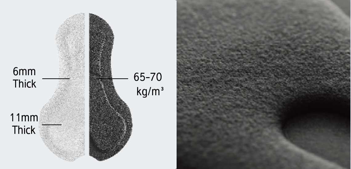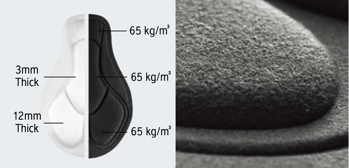 ● デリケートゾーンに、より厚みのあるフォームを配置することで痛みを防⽌