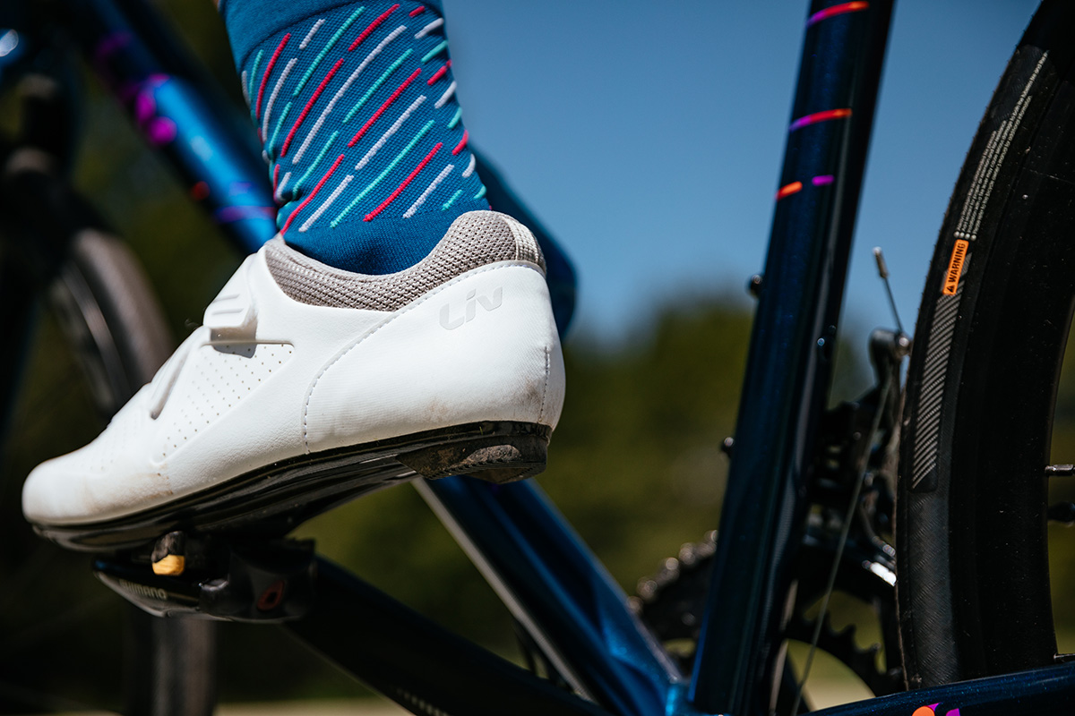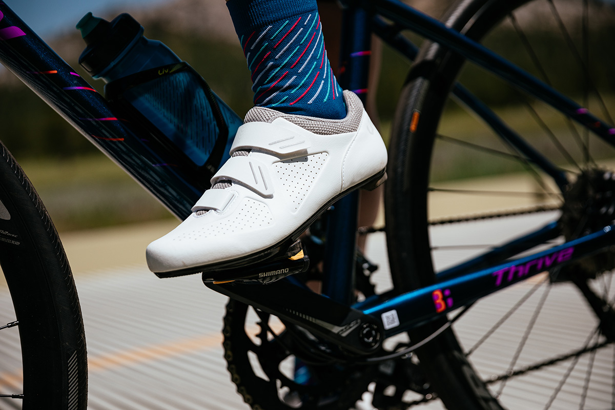 スポーツライドに最適な剛性のナイロンソールを採用した初級・中級者向けSPD-SL対応ビンディングロードシューズ。SPD/SPD-SL両対応