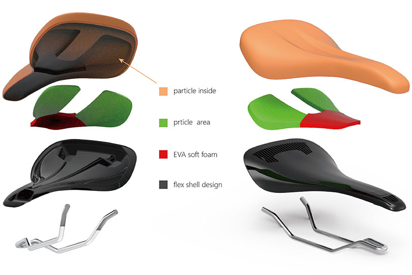 トレイルライドで求められるサポート力や快適性を高めるソフトなフォーム、ライディング中に衣類が引っ掛かりにくいようわずかに下向きにデザインされたロングノーズデザイン、内腿とサドルの摩擦や衝撃を軽減するサイドデザインが、オフロードライドを楽しむすべてのライダーパフォーマンスを向上