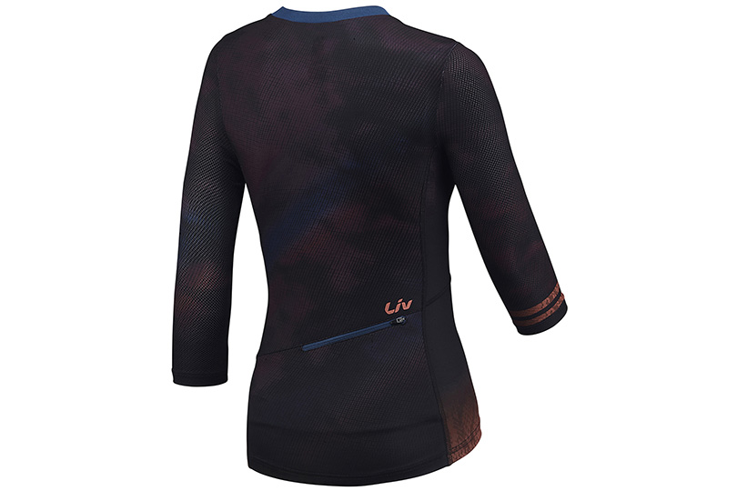木々の生い茂るトレイルでのライドにも最適な耐久性と速乾性を併せ持つ生地に、激しいライドでもライダーの動きを妨げないVネックラインデザインを採用