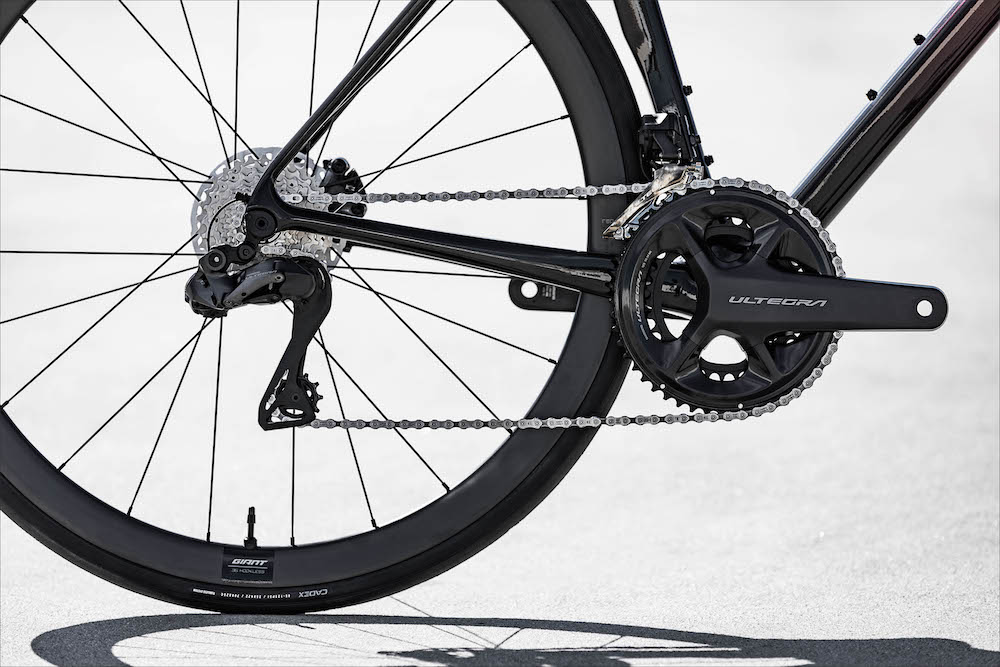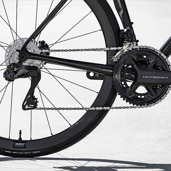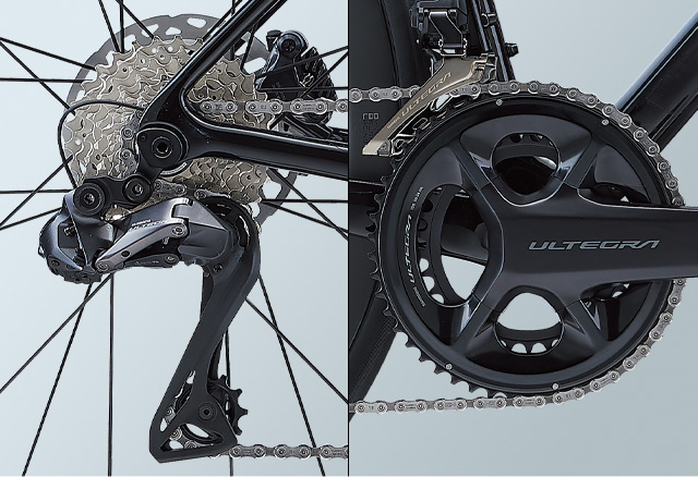 リア12速電動方式の最新シマノアルテグラ・セミワイヤレス電動コンポーネントを標準装備。