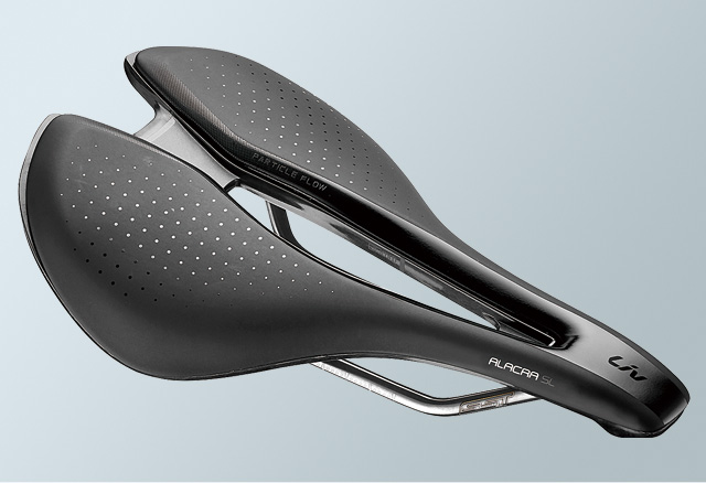 ショートノーズと女性の骨盤に合わせた幅広の形状で安定感とペダリング時の効率性、快適性を向上したパフォーマンスサドル。ユニクリップシステム対応。