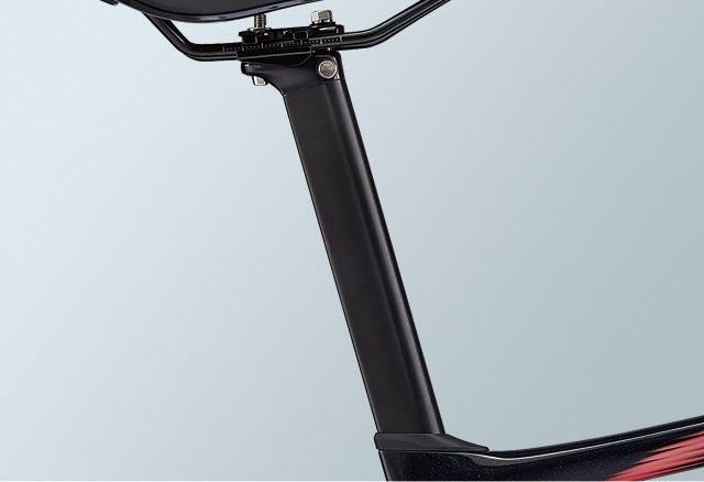 新型形状で進化したエアロ性能と快適性を両立するカーボンシートポストを採用。