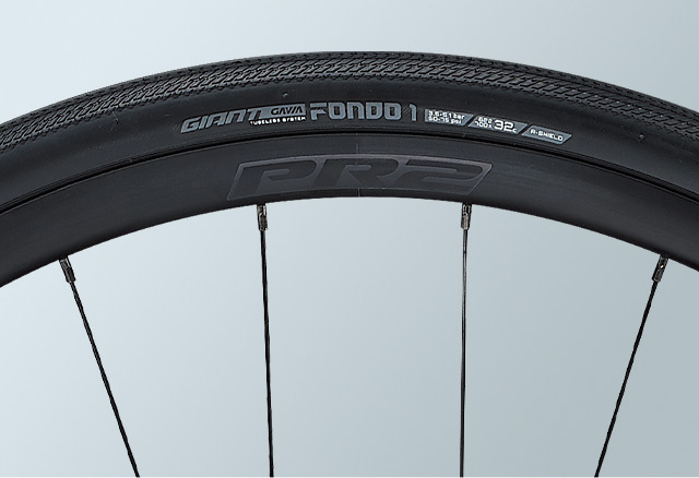 快適性と汎用性の高い32mm幅タイヤを採用。チューブレスレディ仕様で走行効率と耐パンク性に優れる。