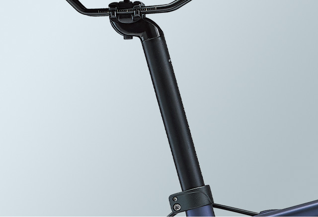 路面からの衝撃を逃がし快適なペダリングをサポートするD型断面形状アルミシートポスト。