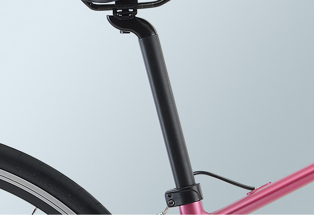 路面からの衝撃を逃がし快適なペダリングをサポートするD型断面形状アルミシートポスト。