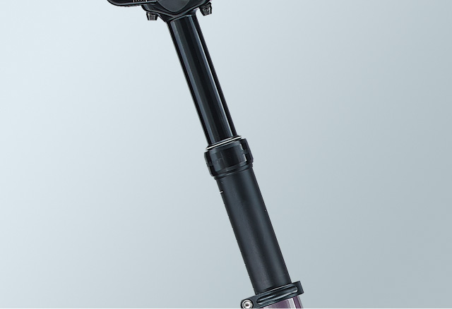 走行状況に合わせて手元のレバーでシート高を調整できるカートリッジ式ドロッパーポストを標準採用。