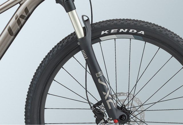 ロックアウト、リバウンド調整を備え、鍛造クラウンを採用する軽量高剛性のエアサスペンションフォーク。