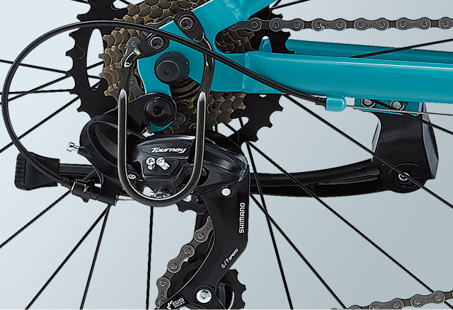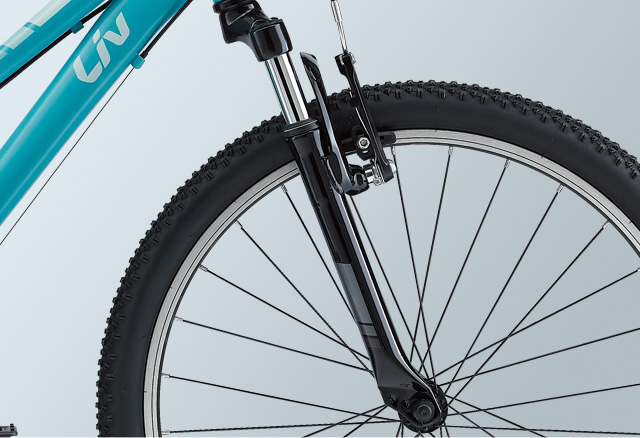 トレイルライドにチャレンジしたい女の子をサポートするため、跨ぎやすい低めのスタンドオーバーハイト※や直感的に操作できるシフトレバーなどの適切な性能を備えたマウンテンバイク「エンチャント」。サスペンションとワイドなタイヤによって、トレイルのデコボコをスムーズに走り抜けてくれます。