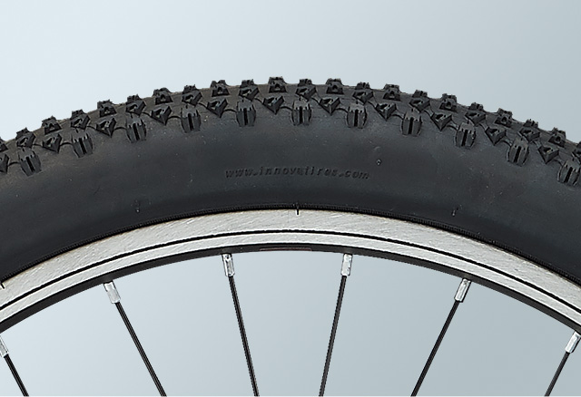 軽い走りとグリップを両立するセミブロックタイヤは安定性の高い2.1インチ幅。