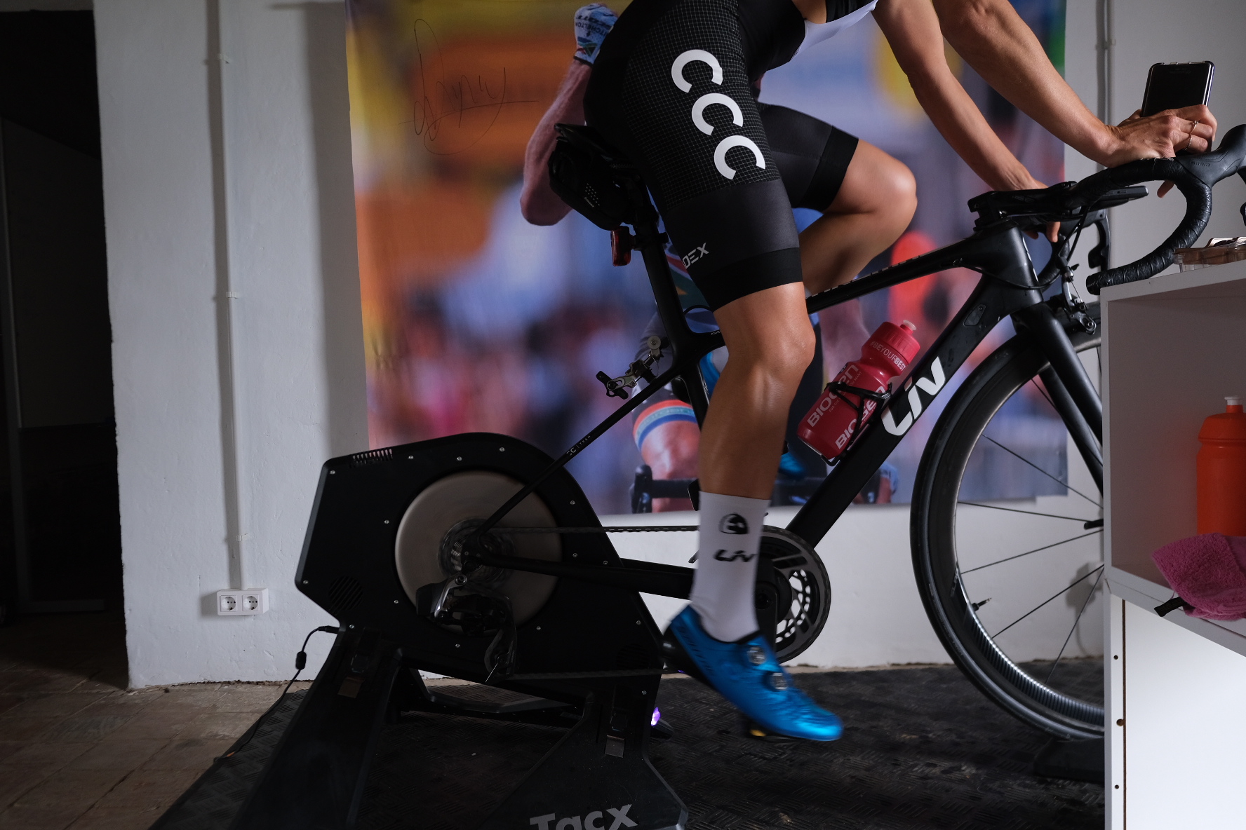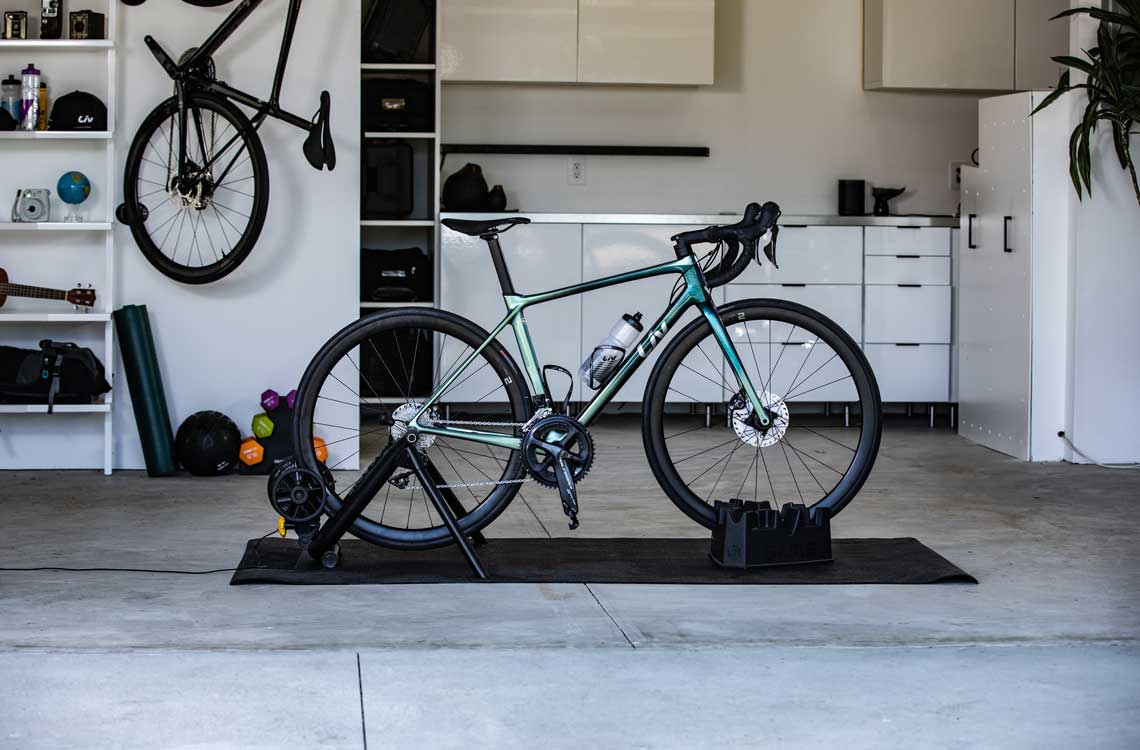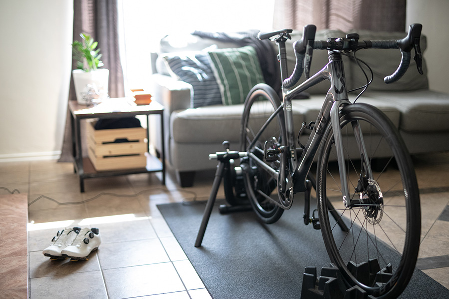 自宅でインドアトレーニングのためのスペースを確保できれば理想的です。可能であれば、トレーナー、前輪用ブロック、タオル、床を保護するマット、扇風機、そしてモニターなどの必要機材のすべてをそのスペースに設置しましょう。そうすれば、あなたがトレーニングしたいときに、バイクをセットするだけで簡単にライドをスタートできます。Zwiftのようなオンラインアプリを使用したい場合は、電源の位置と、PCやタブレットなどのデバイスやモニター、それらを置くテーブルなどについても、準備しておきましょう!