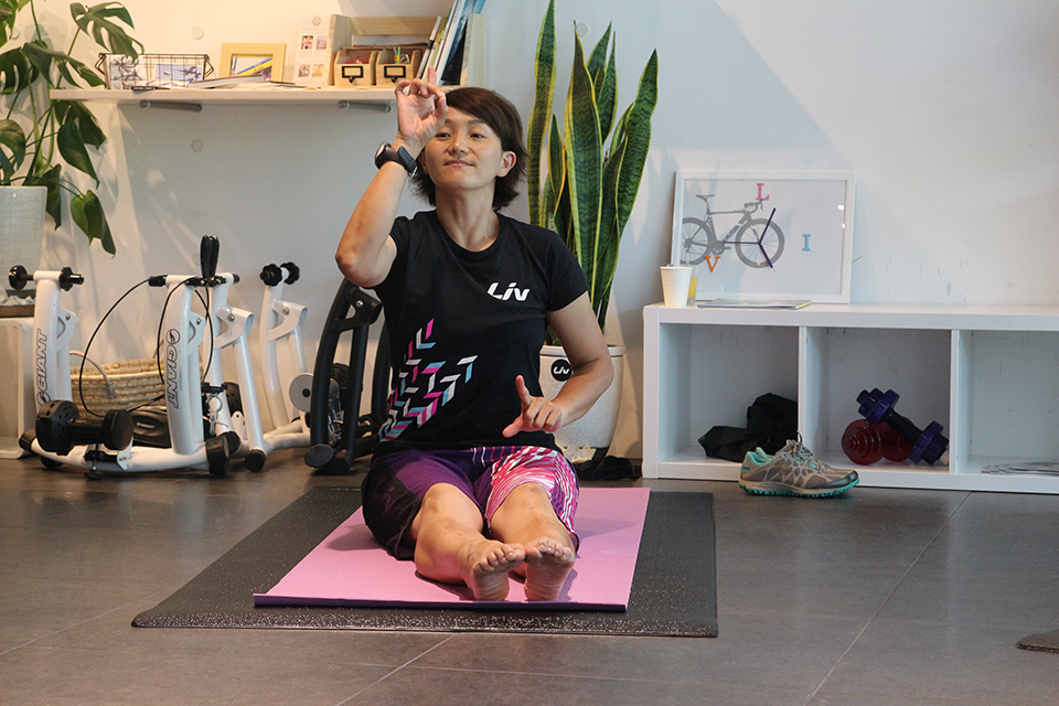 サイクリング中、もも裏やふくらはぎがつるのを予防します。また、全身をのばし血行を良くするので、朝のウォーミングアップにオススメです。