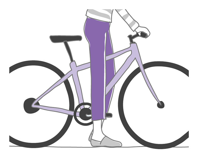 トップチューブと地面との距離サイクリング中に一旦停止するときは、サドルから前方に降りて、トップチューブをまたぐ格好になります。その時に股下からトップチューブまで、3~5cm程度の距離がとれるサイズを選びましょう。