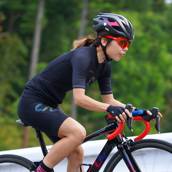 女性用のロードバイクでは物足りなさを感じており、今までは男性モデルの小さなフレームを探して乗っていました。LANGMAは女性モデルでありながら力強さを感じます。平地での巡航性にも優れており、力を込めて踏むと“もっと速く走りたい!もっともっと速く!”とバイクが要求してきます。剛性の高いバイクに多い不安定さもなく、障害物に乗り上げたとしても安定感を保ち、カーブでのキレの良さも感じます。トップレースでも活躍を期待させる私の相棒です。