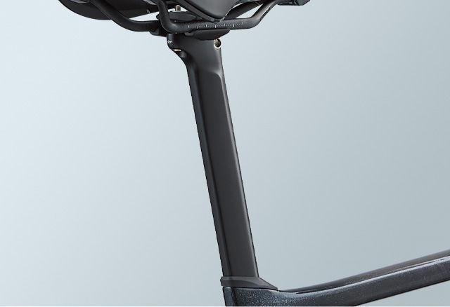 新型形状で進化したエアロ性能と快適性を両立する超軽量のフルカーボンシートポストを採用。
