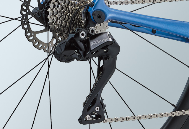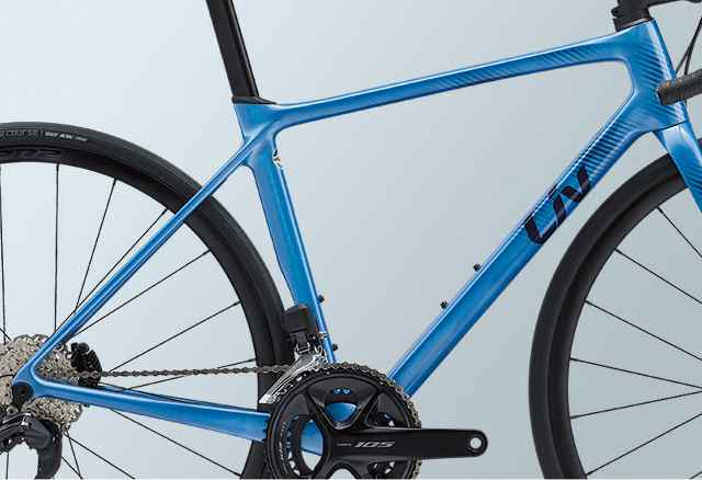 リア12速電動方式の最新シマノ「105」セミワイヤレス電動コンポーネントを標準装備。