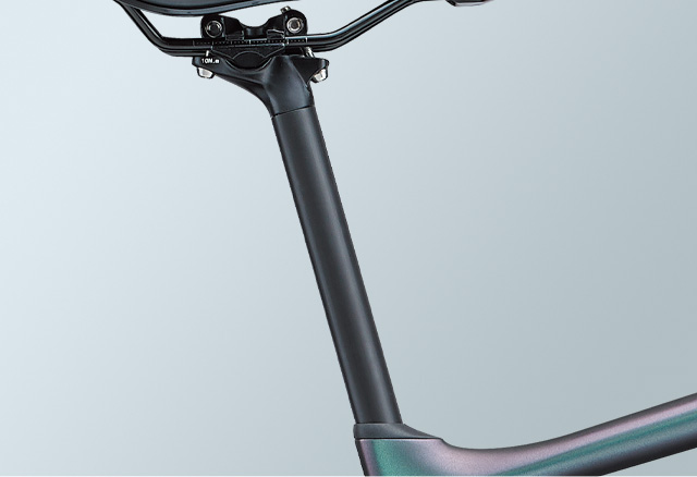 路面からの衝撃を逃がし快適なペダリングをサポートするD型断面形状カーボンシートポスト。