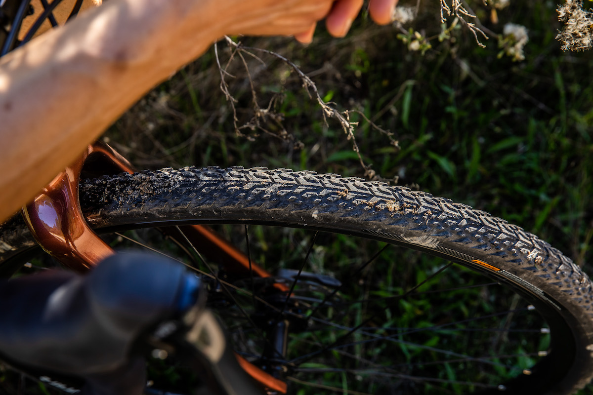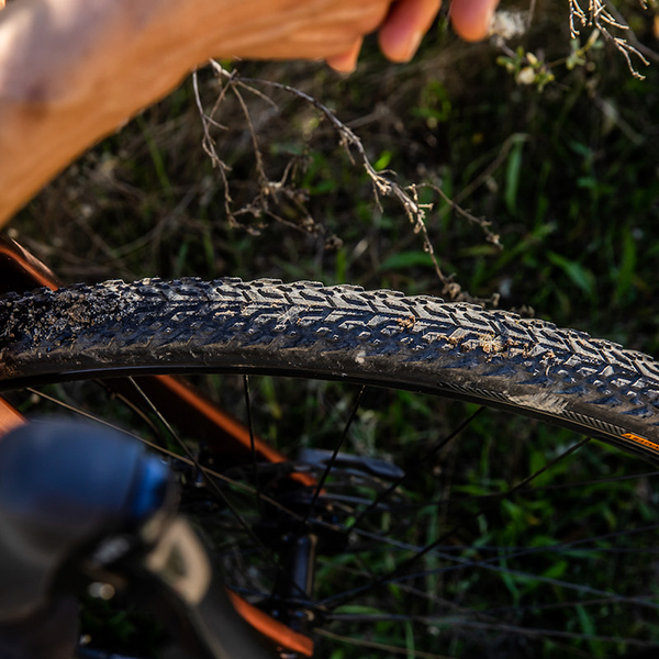 700×38Cのオフロード性能とセミブロックパターンによる走りの軽さを兼ね備えるグラベル用チューブレスレディタイヤ。