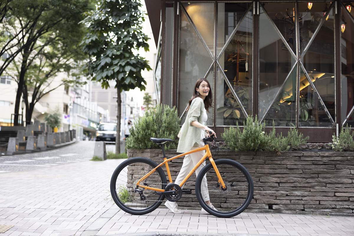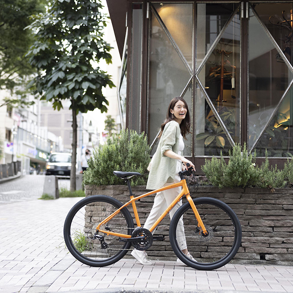 少し太めのタイヤが特徴の「グラム」は、どんな路面でも安定感が抜群。ソフトなグリップや柔らかいサドルなどによる快適性と、見た目からは想像できない軽快な走りで、「ESCAPE R W」と並ぶクロスバイクの新定番としてビギナー女性にオススメです。ディスクブレーキ仕様は、軽く握っても効きが良く、バイクや衣服も汚れにくいので、さらに安心・快適です。