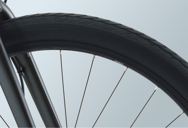 安心のエアボリュームが快適性を高め、700Cクロスバイクと同じ外周径が軽い走行感を実現。