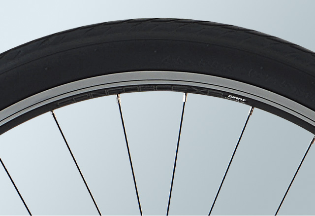安心のエアボリュームが快適性を高め、700Cクロスバイクと同じ外周径が軽い走行感を実現。