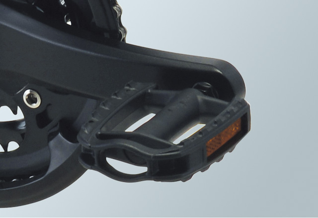 パンプスなどで乗っても滑りにくく靴底を痛めにくい軽量プラスチックペダル。