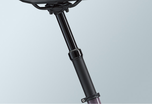 走行状況に合わせて手元のレバーでシート高を調整できる油圧式ドロッパーポストを標準採用。