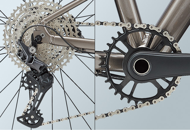 高いレスポンスと安定性に優れる、シマノ「DEORE」 12速ドライブトレインを採用。