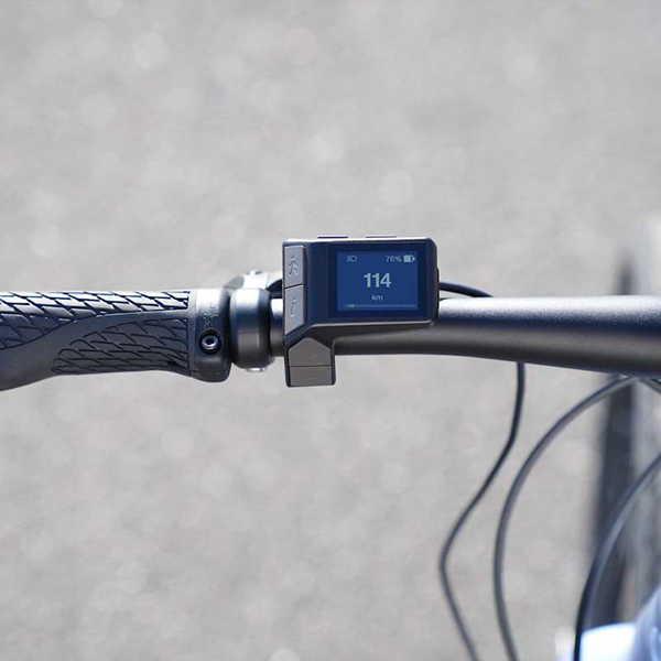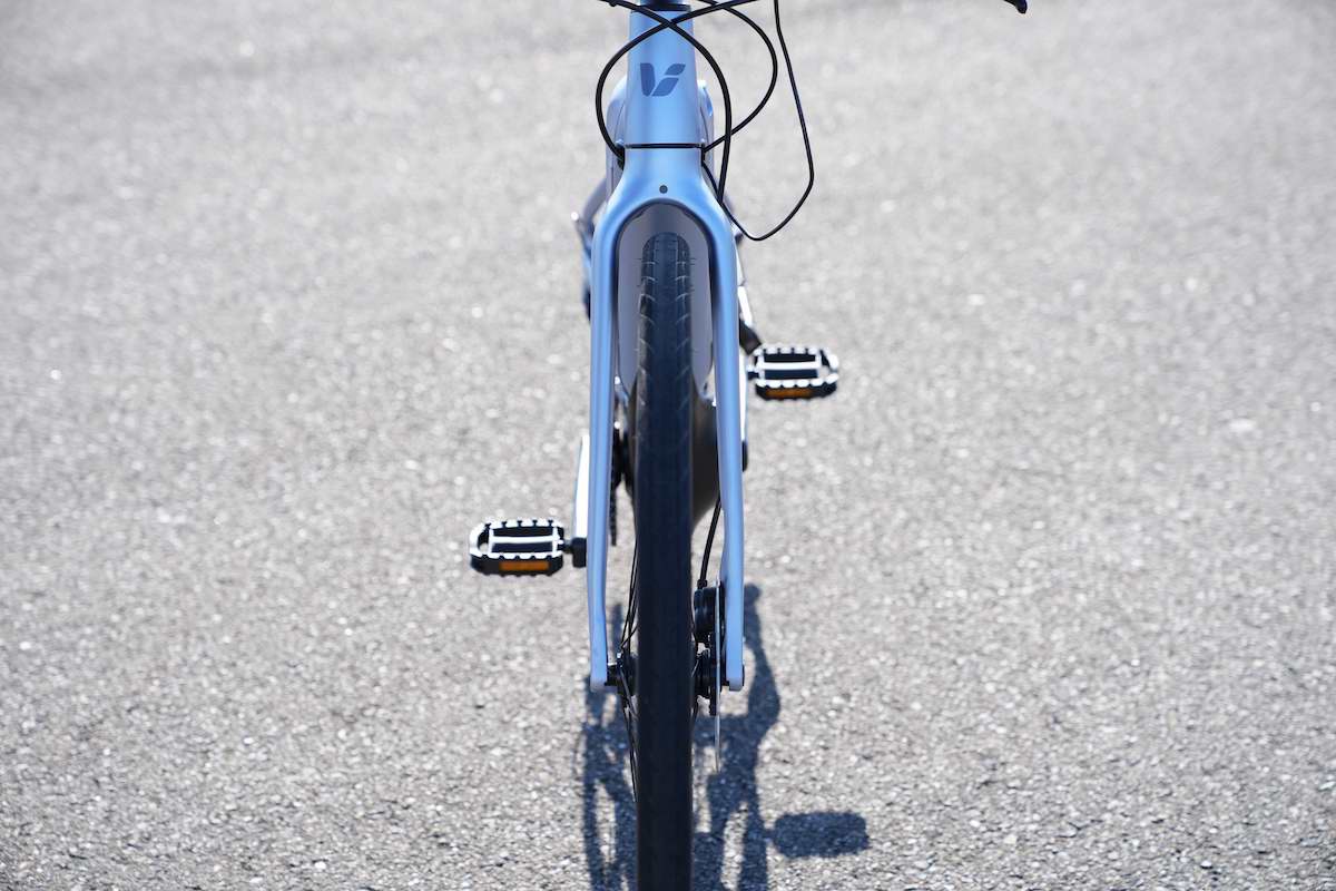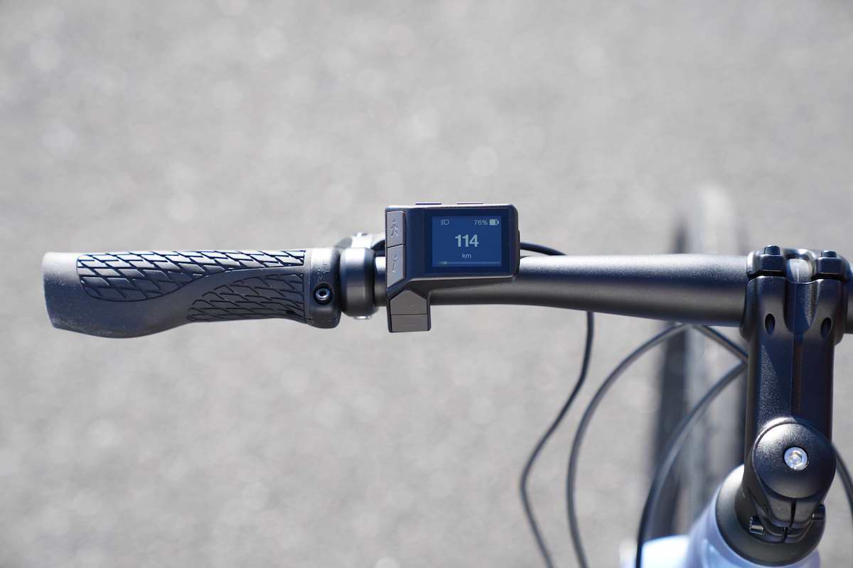 ダウンチューブ一体型のバッテリーや小型ディスプレイがクリーンな外観を実現。油圧ディスクブレーキ、幅広タイヤ、