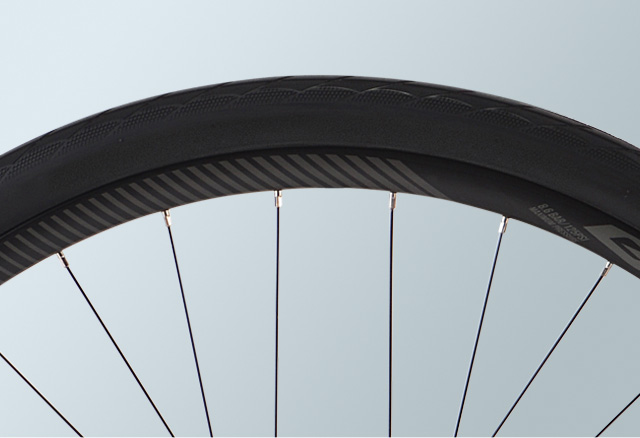 軽い走行感と高いグリップを実現する実測約40mmのワイドタイヤ。耐パンク性の高いK-SHIELD仕様。