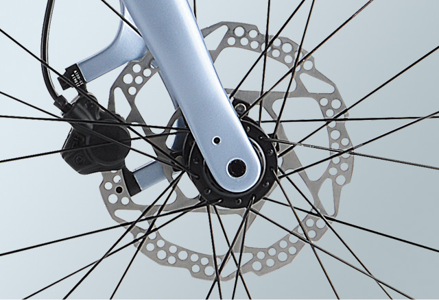 レバーの引きが軽く、重量のあるEバイクでも安心の制動力とコントロール性が高い油圧ディスクブレーキを採用。