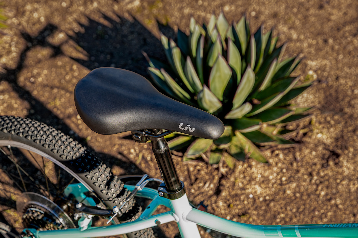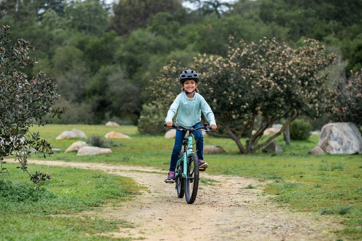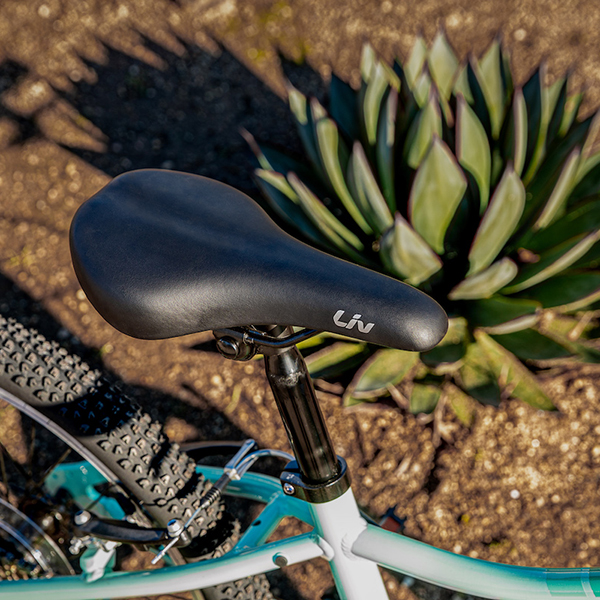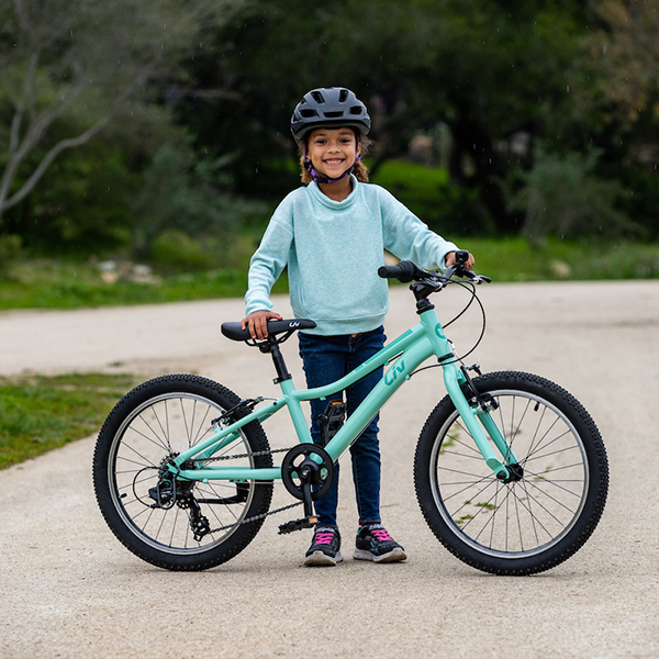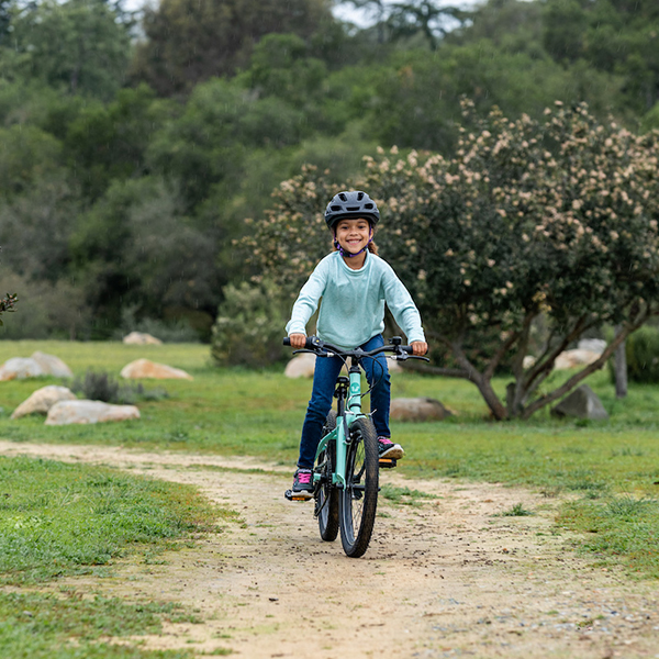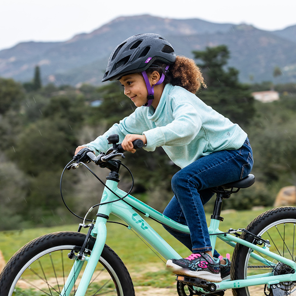 トレイルライドにチャレンジしたい女の子をサポートするため、またぎやすい低めのスタンドオーバーハイト(※)や直感的に操作できるシフトレバーなどの適切な性能を備えたマウンテンバイク「エンチャント」。ワイドなタイヤによって、トレイルのデコボコをスムーズに走り抜けてくれます。