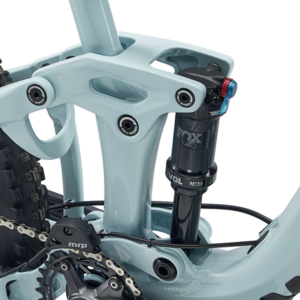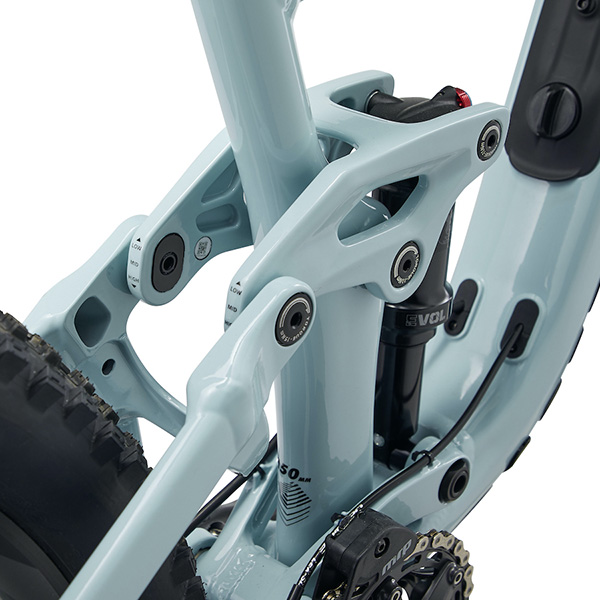 安定性とコントロール性を高めるフレーム設計とともに、ライディングスタイルや走る路面によってヘッド角、シート角、BB高を3段階に調整できる