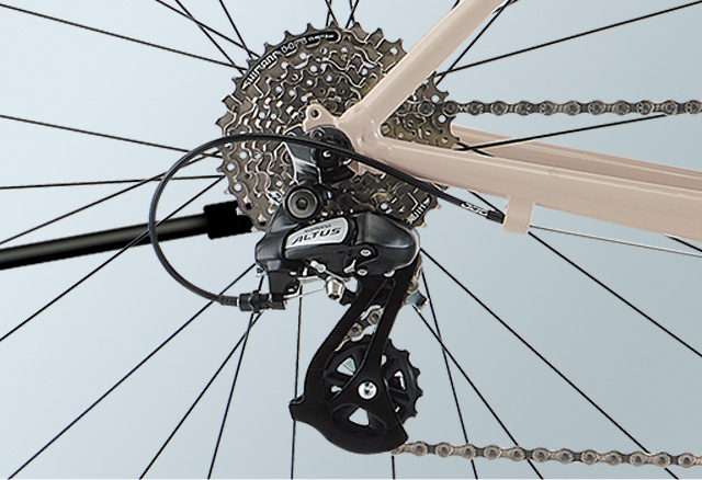操作性と信頼性の高いシマノ製コンポーネントを採用。初めてのスポーツバイクでも快適に操作ができる。