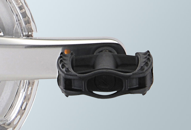パンプスなどで乗っても滑りにくく靴底を痛めにくい軽量プラスチックペダル。